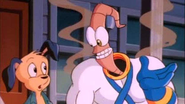 De esta manera, a mediados de los noventas, apareció un videojuego llamado Earthworm Jim en la Sega Genesis, creado por Doug TenNapel, dibujante y animador, y por David Perry, programador, por encargo de la compañía Playmates Toys. TenNapel fue el encargado de diseñar a los personajes, villanos y gran parte de los escenarios, mientras que Perry tradujo toda esa información en datos para la consola. Gracias a que Doug TenNapel era animador, muchas características de Jim son caricaturescas, así sus expresiones y reacciones. Tan fue asi la influencia de los Cartoons en este juego, que la manera para animar a Jim como personaje jugable fue hecha apartir de celdas de animación que fueron digitalizadas después para mantener ese aspecto que sus creadores querían y que era que fuese como una ”caricatura jugable”.